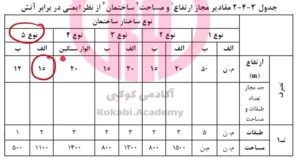 تعیین ساختار ساختمان از فصل سوم صفحه ۳۶ ساختار نوع ۵-الف می‌باشد