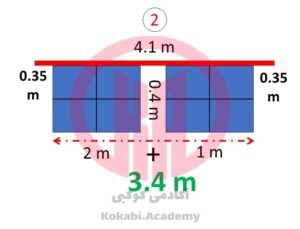 طول تیر نعل درگاه: 340 + (2 × 35) = 410 سانتی متر